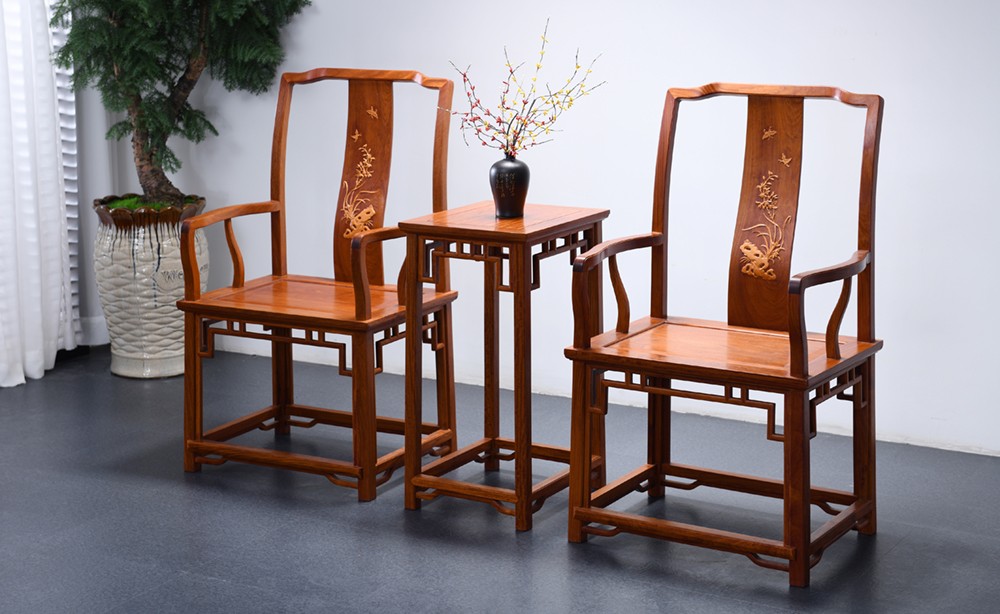 HK0303 镶黄杨官帽椅带几 缅甸花梨