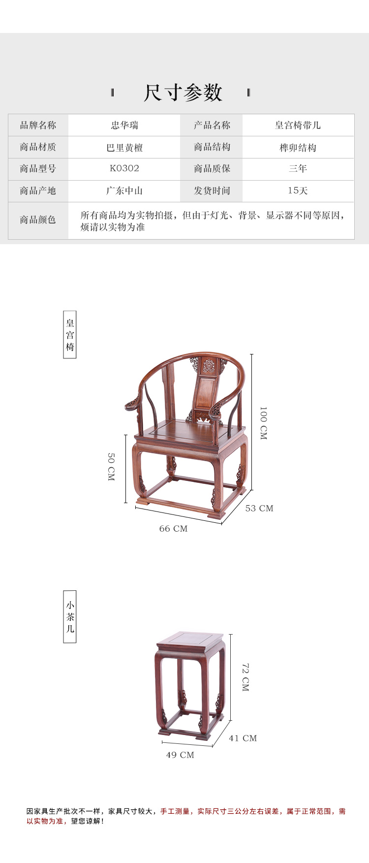 K0302-皇宫椅带几-巴里黄檀