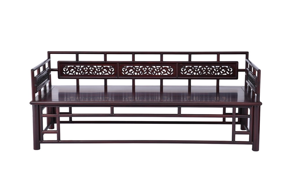 N1115-圆腿雕花罗汉床-染料紫檀_